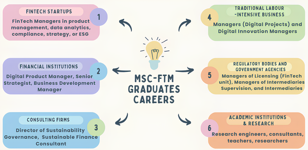 The MSc-FTM programme is designed to provide students with a comprehensive understanding of the FinTech industry while equipping them with essential managerial skills to thrive in this dynamic sector. Recognising that many FinTech companies, such as virtual asset platforms and AI lending firms, rely on data science, law, research, and sustainability professionals, the programme imparts relevant knowledge to help students effectively lead and communicate with their teams. A key focus is nurturing students' critical thinking abilities, enabling them to identify and develop innovative solutions for real-world challenges. The programme also emphasises the importance of ethical and responsible practices in FinTech, with a strong commitment to sustainability and regulatory compliance. Our goal is to cultivate well-rounded professionals who can navigate the complexities of the FinTech landscape and drive sustainable innovation.