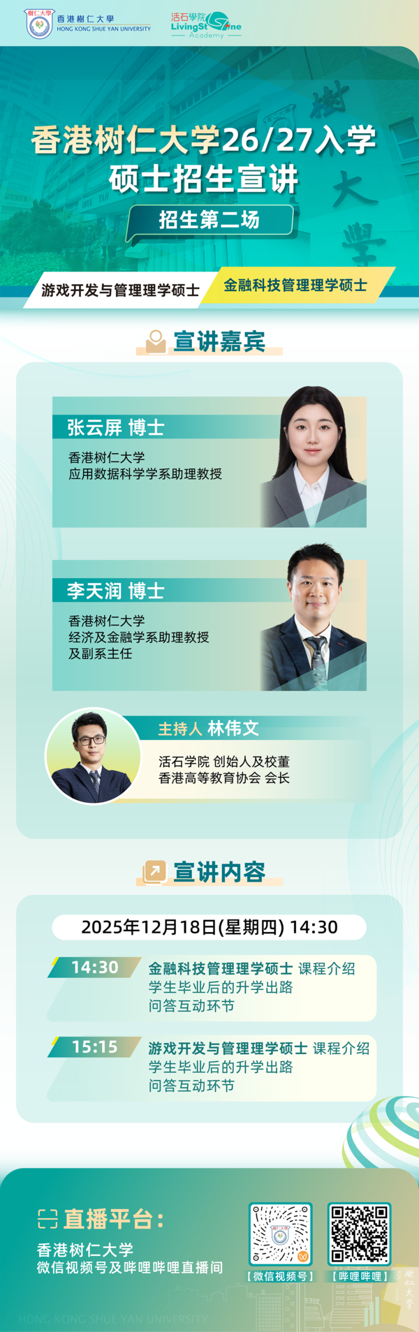 形式:香港樹仁大學微信視頻號及嗶哩嗶哩直播間直播